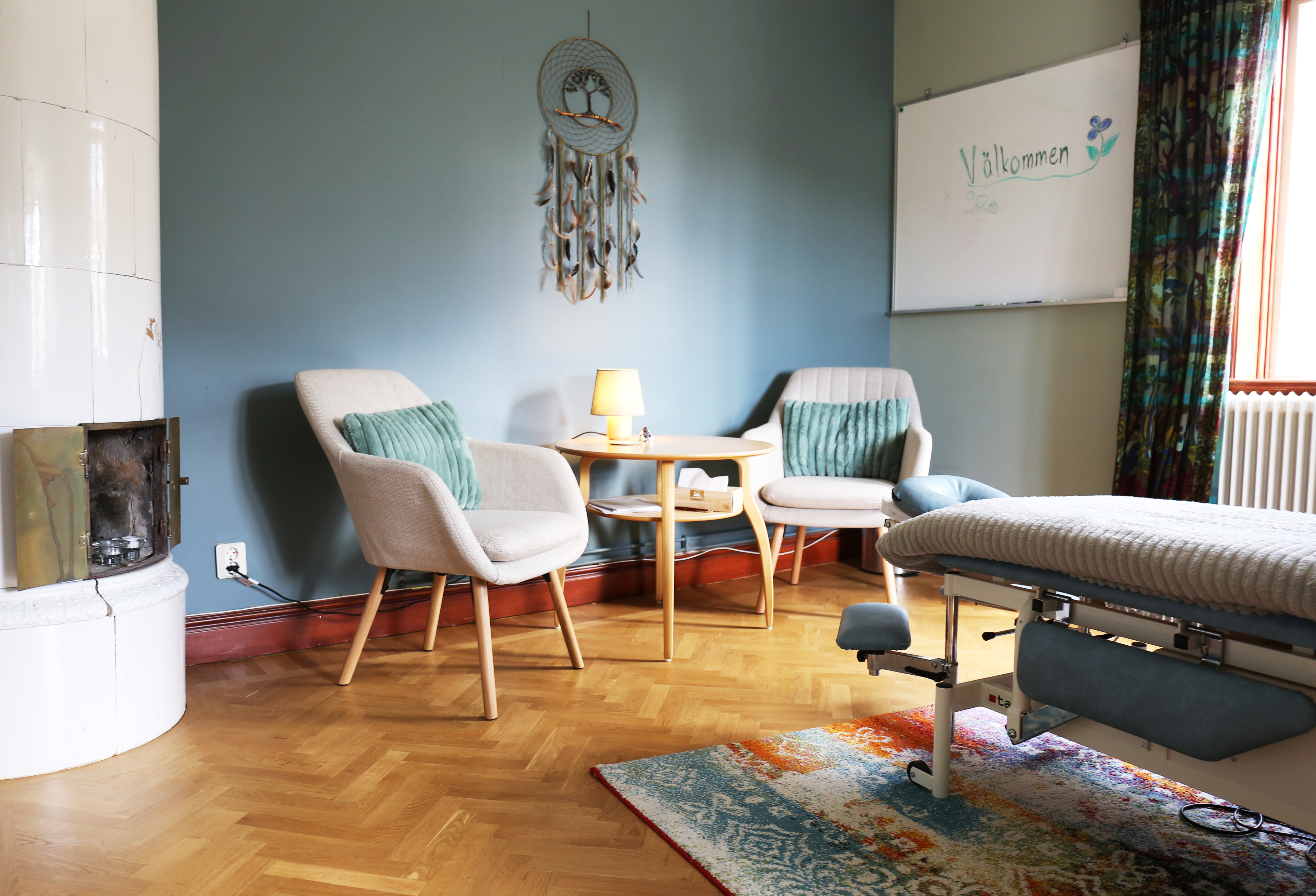 Tillgänglighet: De flesta behandlingsrummen ligger i husets övervåning, utan hiss. Om du inte kan gå i trappor, kontakta din terapeut, så ser vi till att boka rummet på bottenvåningen för dig.